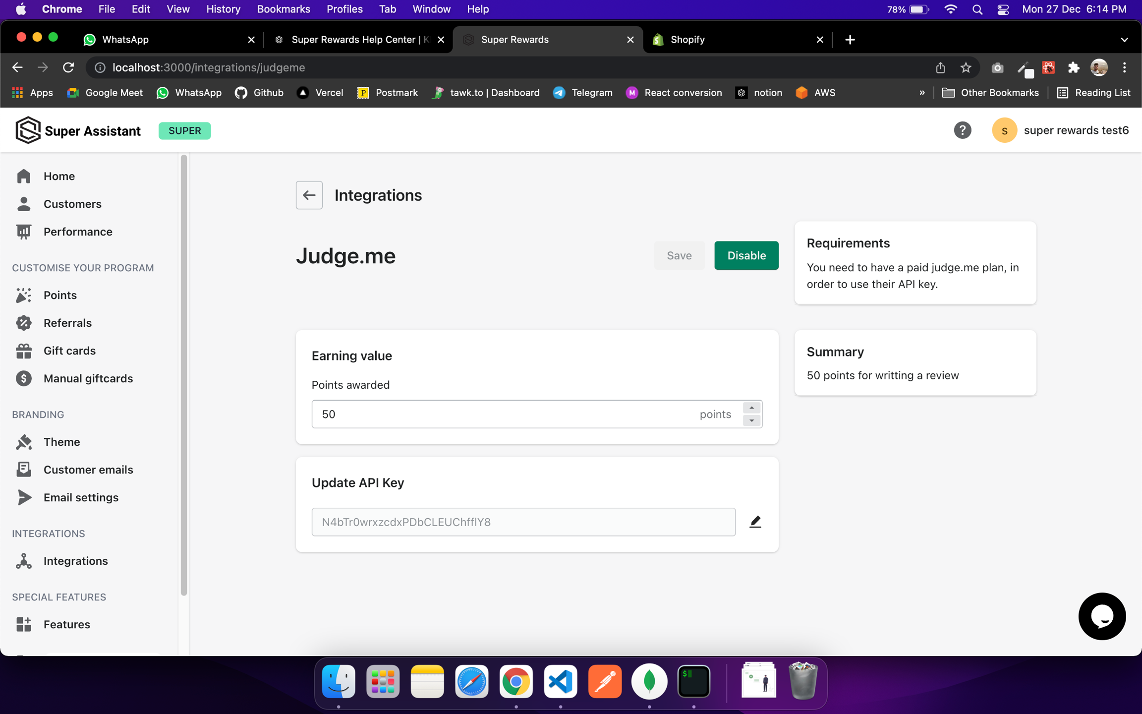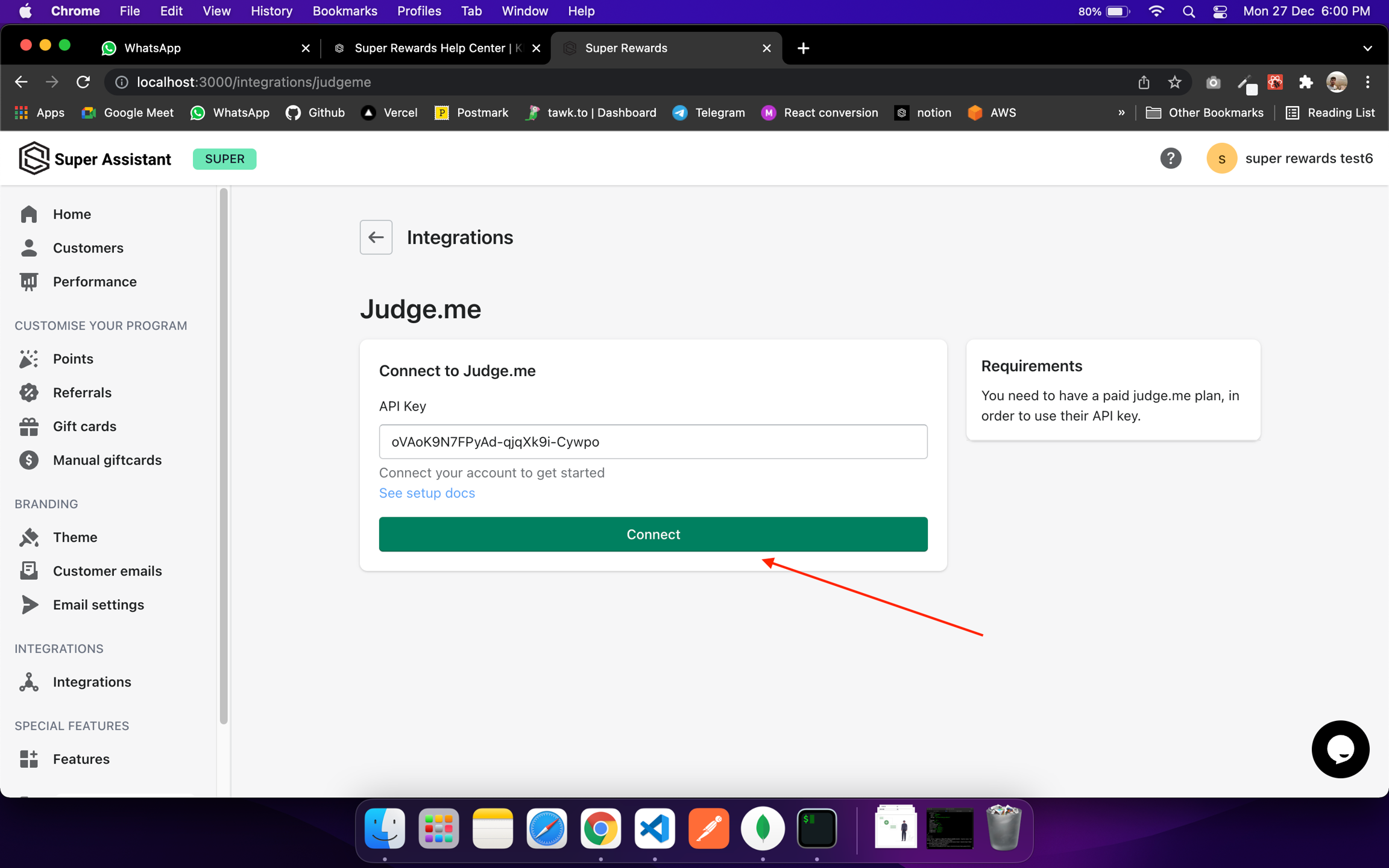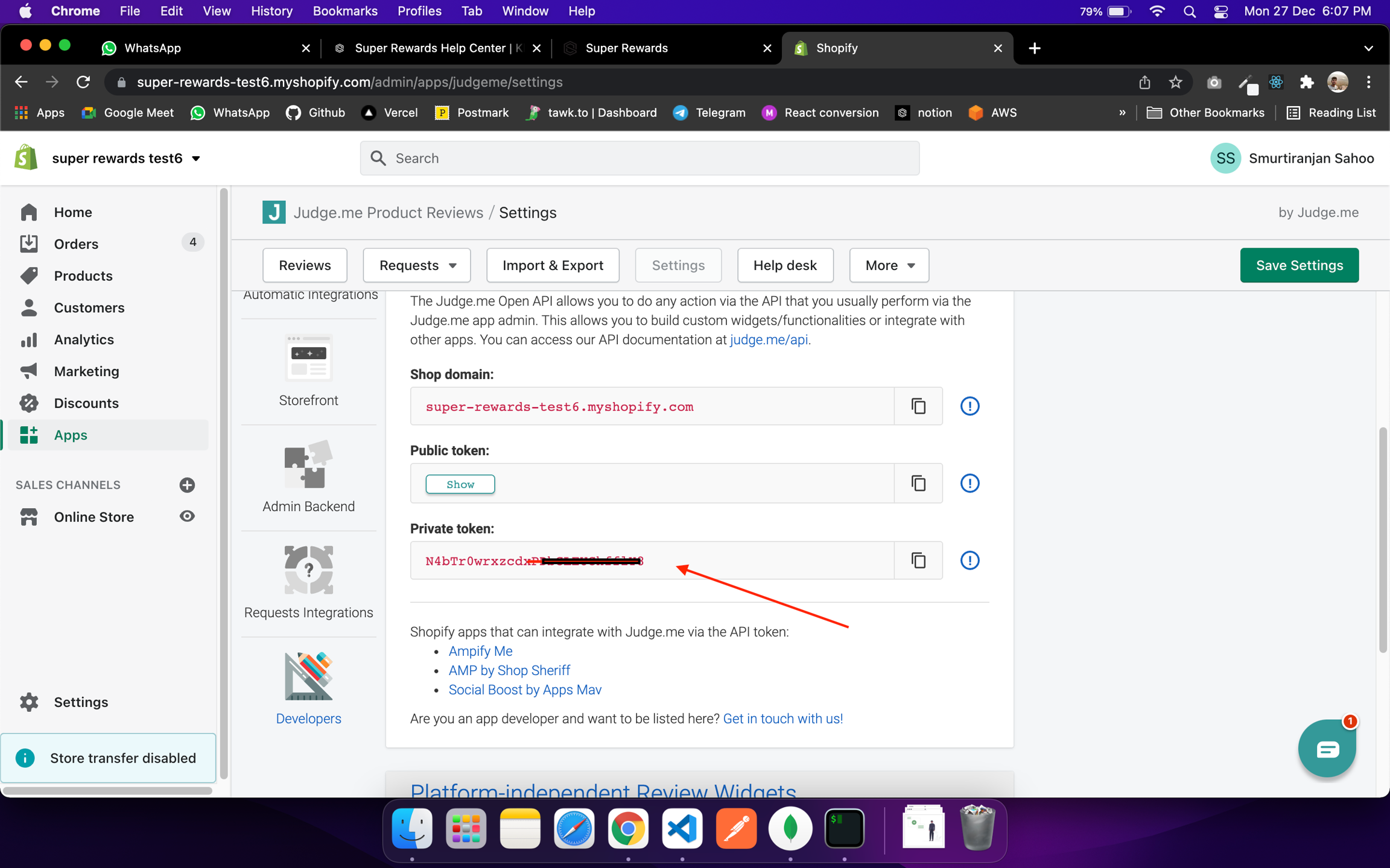Now, Copy the Private token and go to super rewards Dashboard.