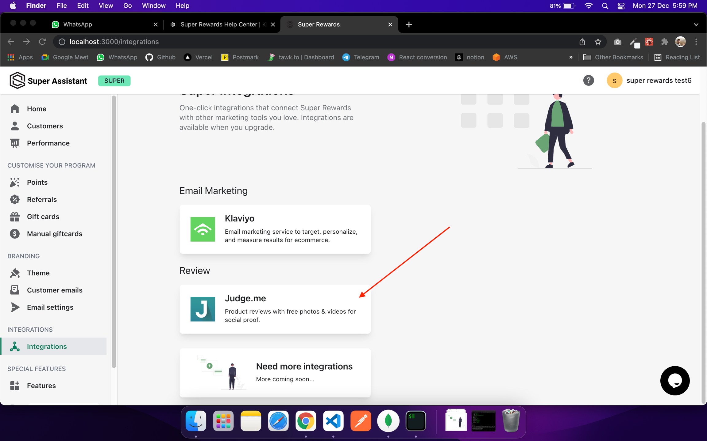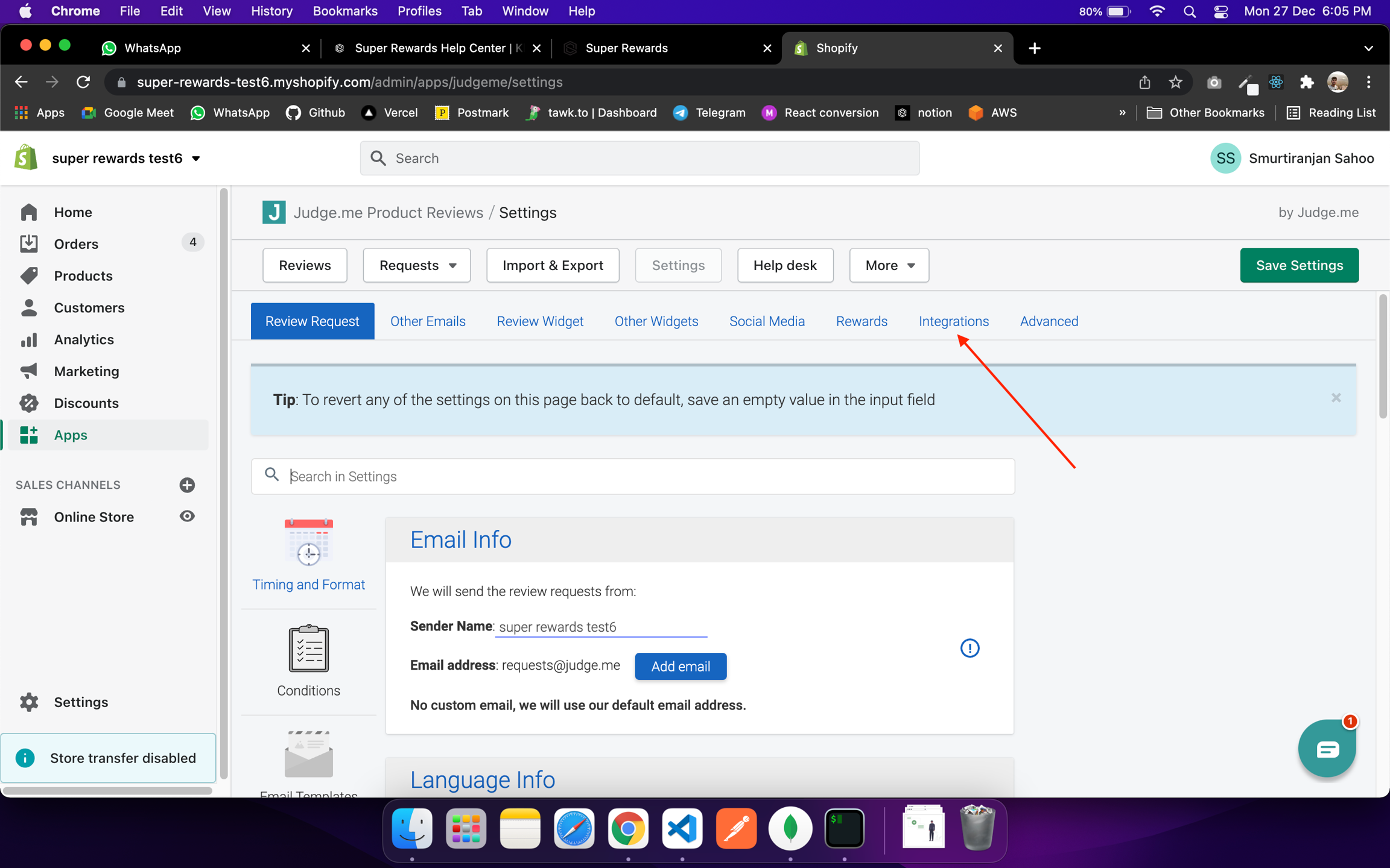 Here, under Integration section, you'll see Judge.me, Click on it.