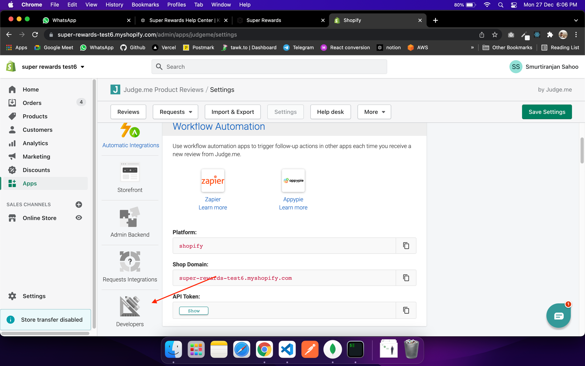 First, lets get the API key from Judge.me.
