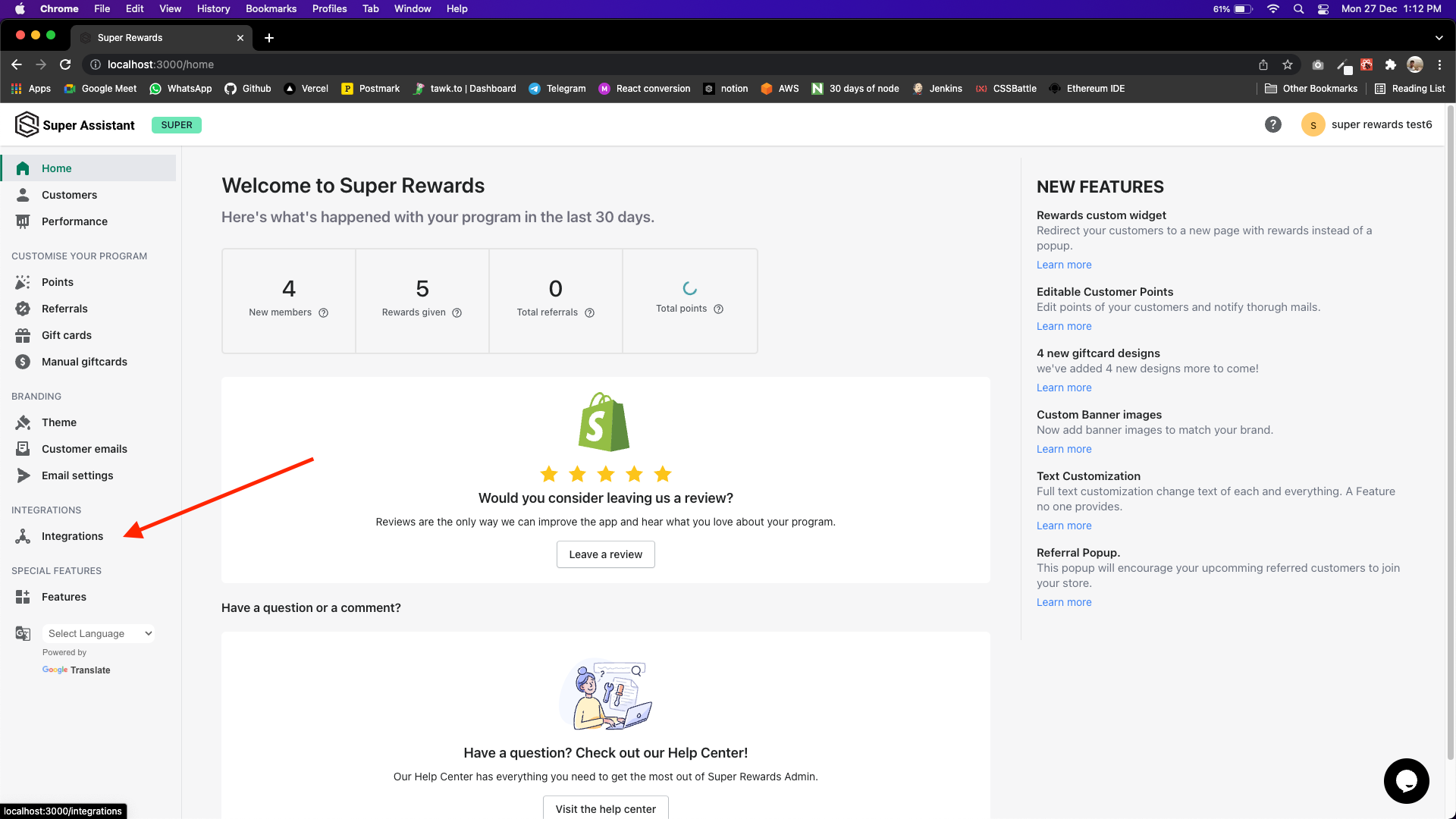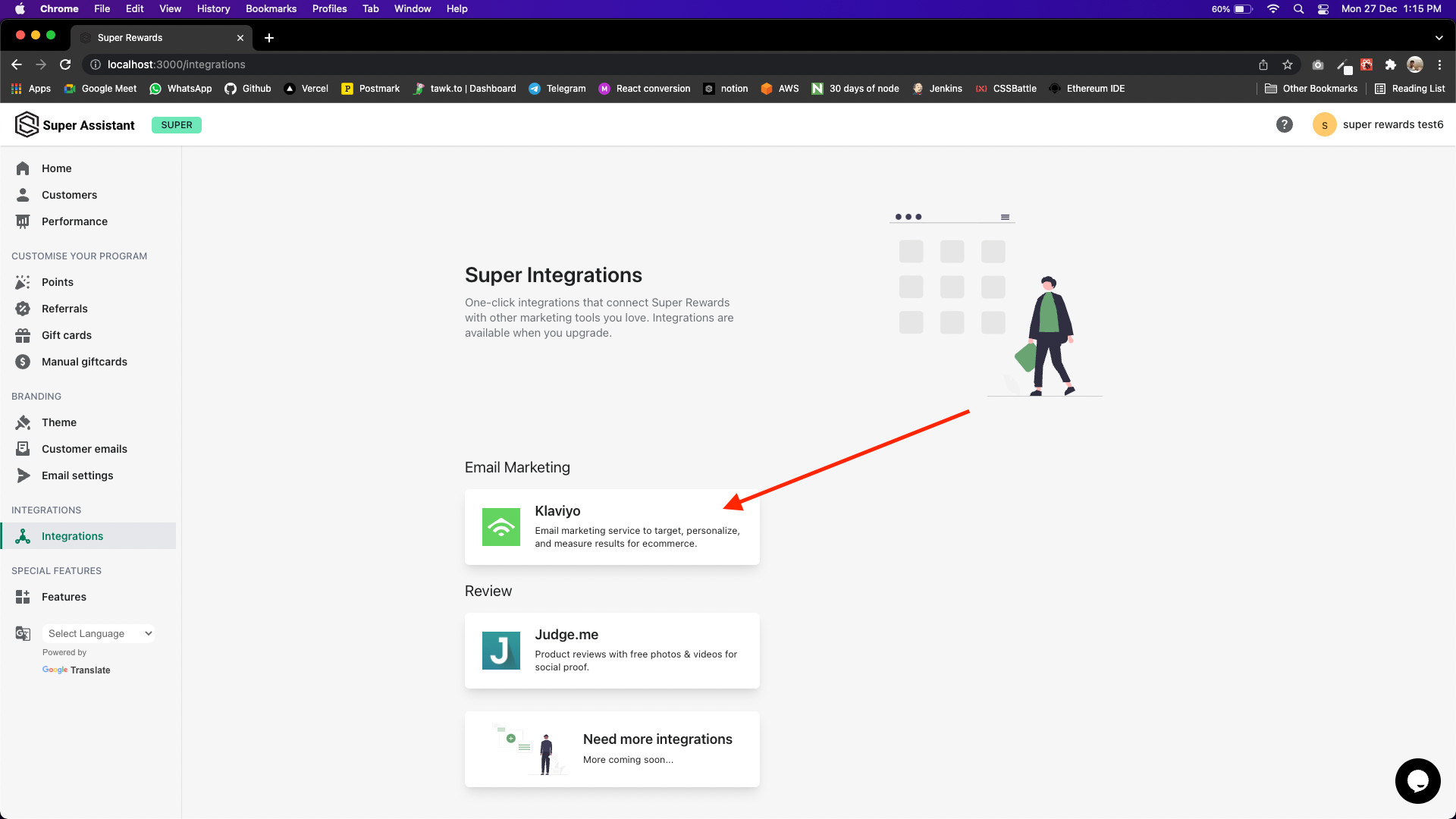 Open super rewards dashboard, you'll see Integrations tab.