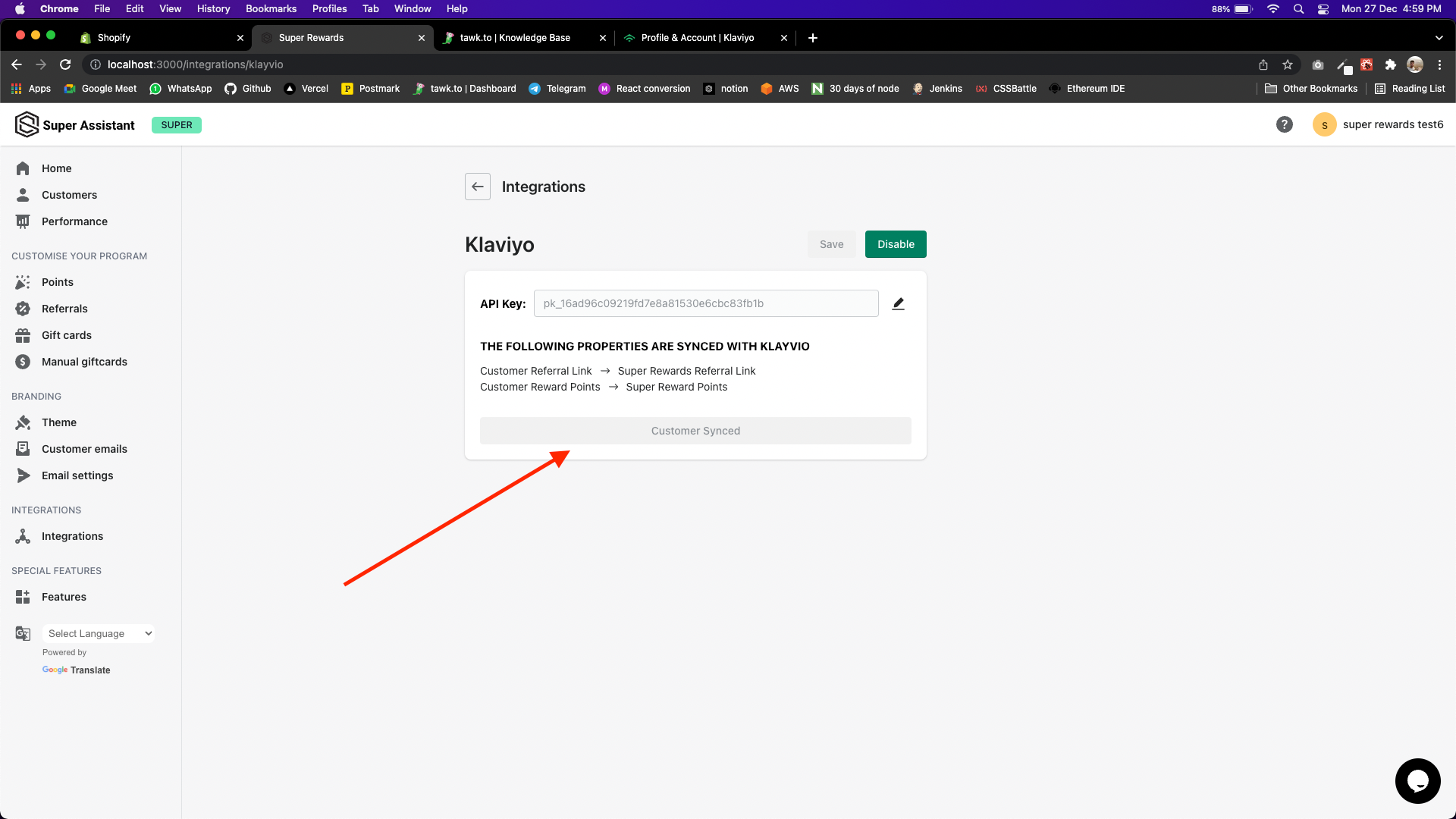 Copy the API Key, and go back to super rewards dashboard.